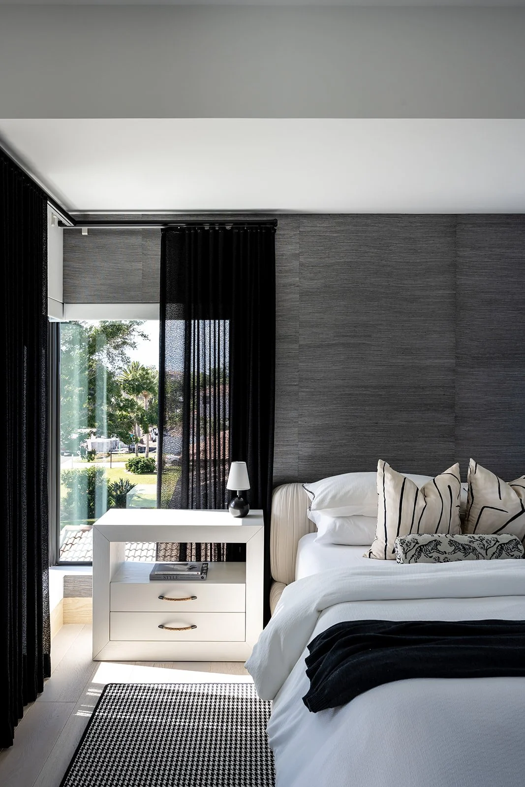 The exterior establishes a strong architectural presence, while the interiors carry that language inward through a palette of warm neutrals, organic materials, and tactile finishes. Soft curves balance clean lines. Intentional contrasts and quiet moments of pattern add dimension without overwhelming the serenity of the space. Every finish and furnishing was selected to feel cohesive yet collected- refined but never precious. The result is a canal-front home that feels grounded, layered, and quietly bold.